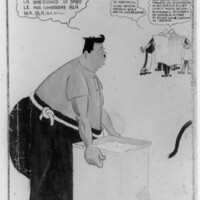 A cartoon sketch depicting life at the Australian Prisoner of War and Internment Camp, Tatura, Victoria, drawn by one of the internees